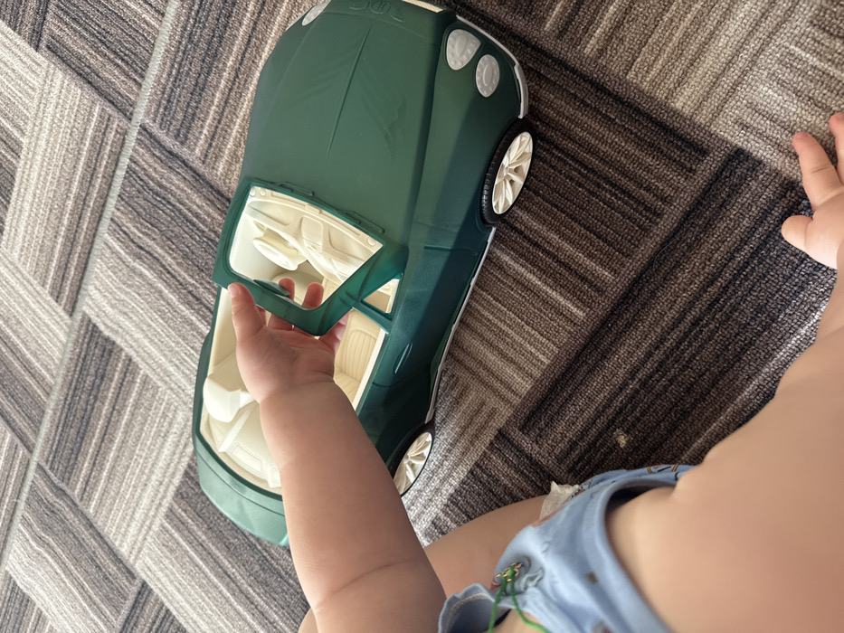 - "The image displays a close-up, high-angle view of a child's interaction with a large toy car indoors" by FM-yY1zz1, licensed under CC BY 4.0