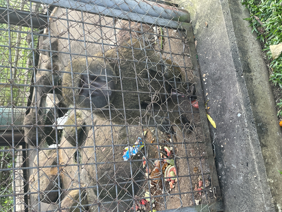 - "The image displays an adult baboon, identified as a likely olive baboon, seated within a rusty chain-link enclosure at the Abuja National Children's Park and Zoo in Abuja, Nigeria" by FM-Qymot1, licensed under CC BY 4.0