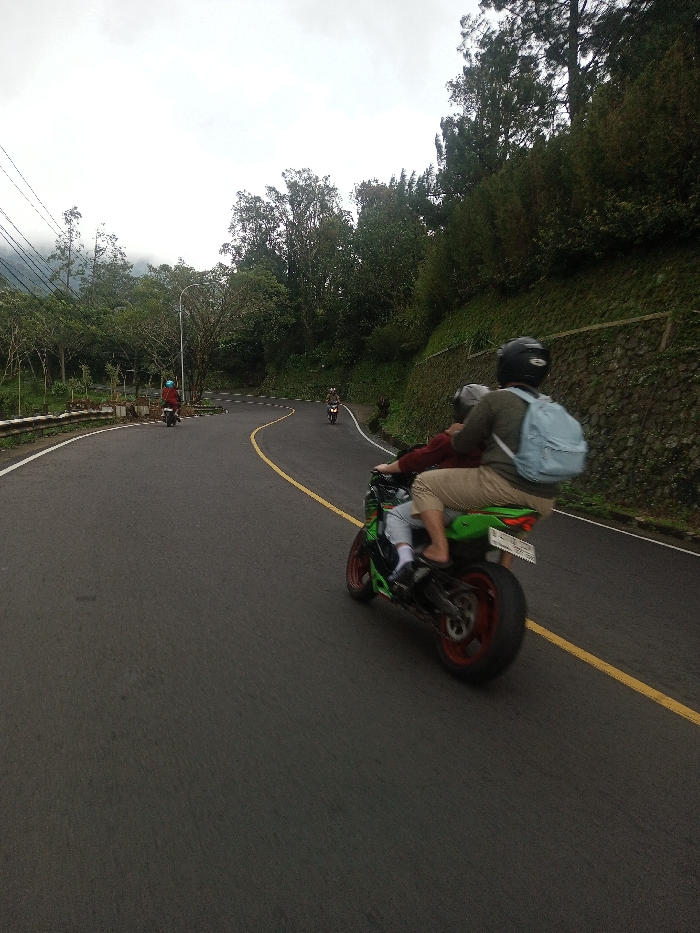 - "A motorcycle carries two people on a winding paved road, marked with a yellow line" by FM-stm363, licensed under CC BY 4.0