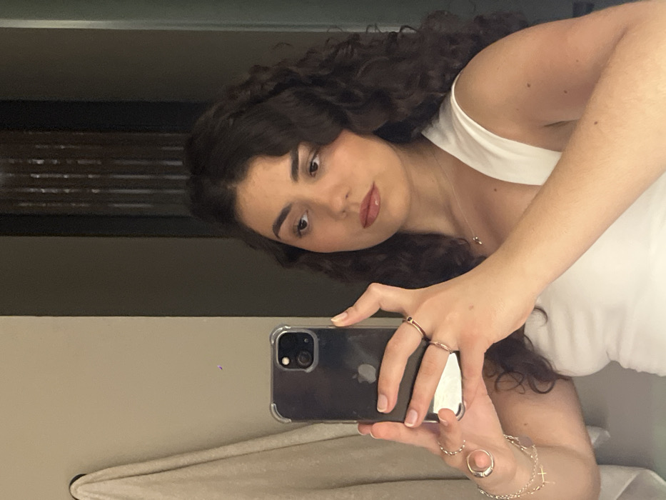 - "A woman with dark curly hair and a white tank top is taking a selfie in a mirror" by FM-3PMzr1, licensed under CC BY 4.0