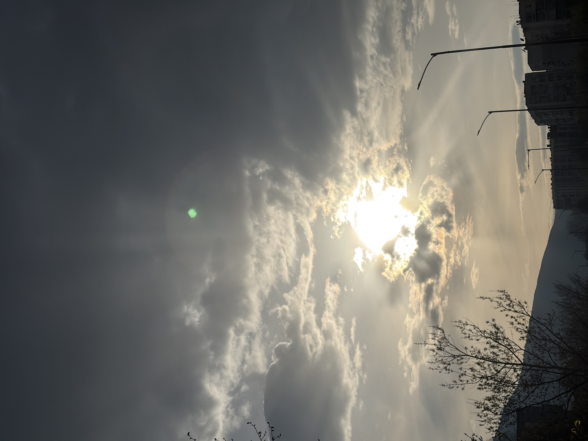 - "The image depicts a cloudy sky with the sun shining through, accompanied by some buildings and streetlights on the right side" by FM-cKUzd2, licensed under CC BY 4.0