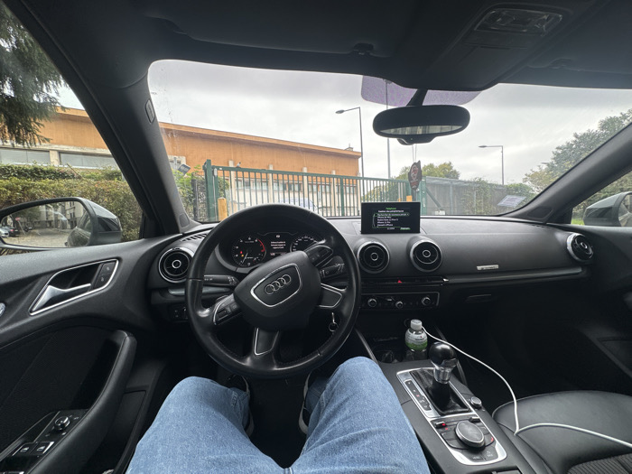 - "The image provides a first-person view from the driver's seat of an Audi vehicle, facing forward through the windshield" by FM-lS6eB2, licensed under CC BY 4.0