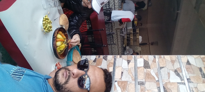 The image captures an interior scene of a casual restaurant in Sidi Allal El Bahraoui, Morocco