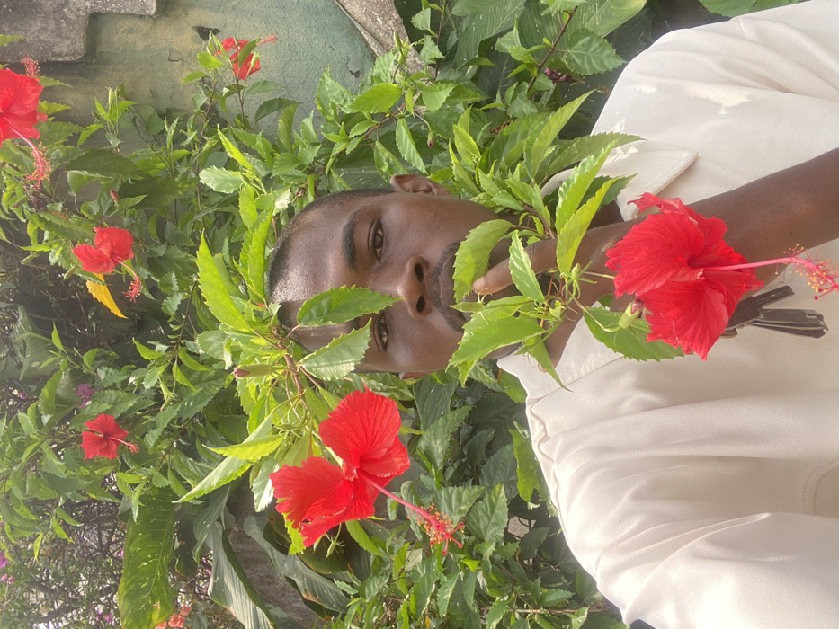 - "An adult male subject is depicted outdoors in Langbasa, Nigeria, partially obscured by dense green foliage and red hibiscus flowers" by FM-6XMFv1, licensed under CC BY 4.0