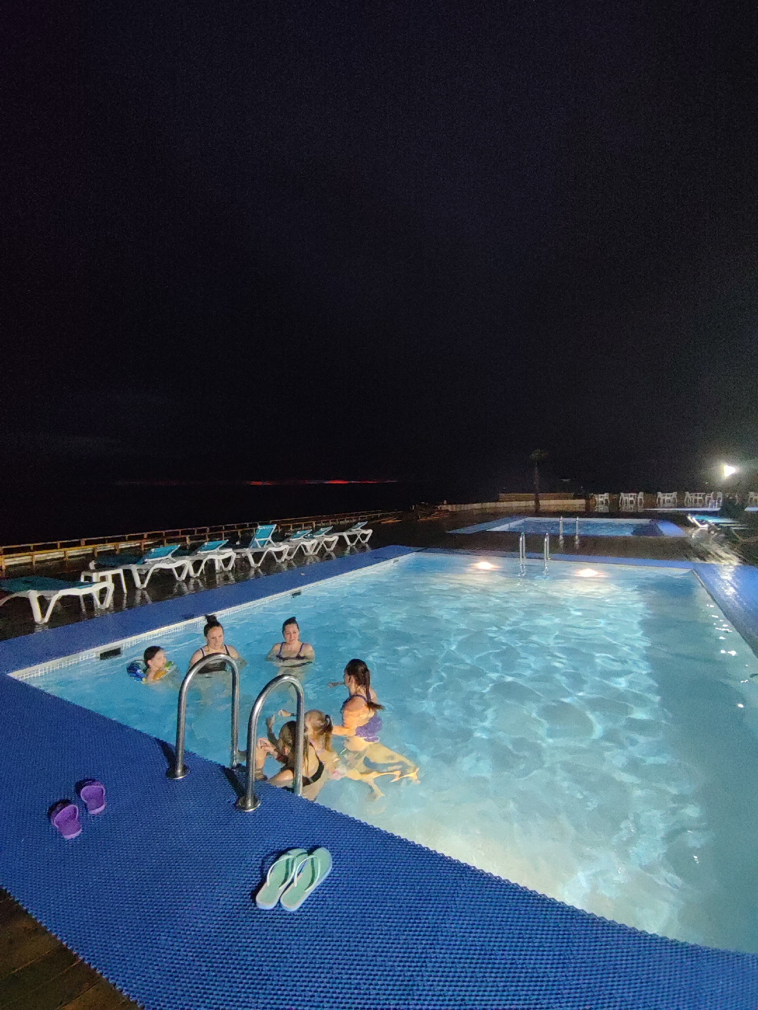 - "At night in Sirius, Russia, several individuals, including children and adults, are in a swimming pool" by FM-sFCoH2, licensed under CC BY 4.0