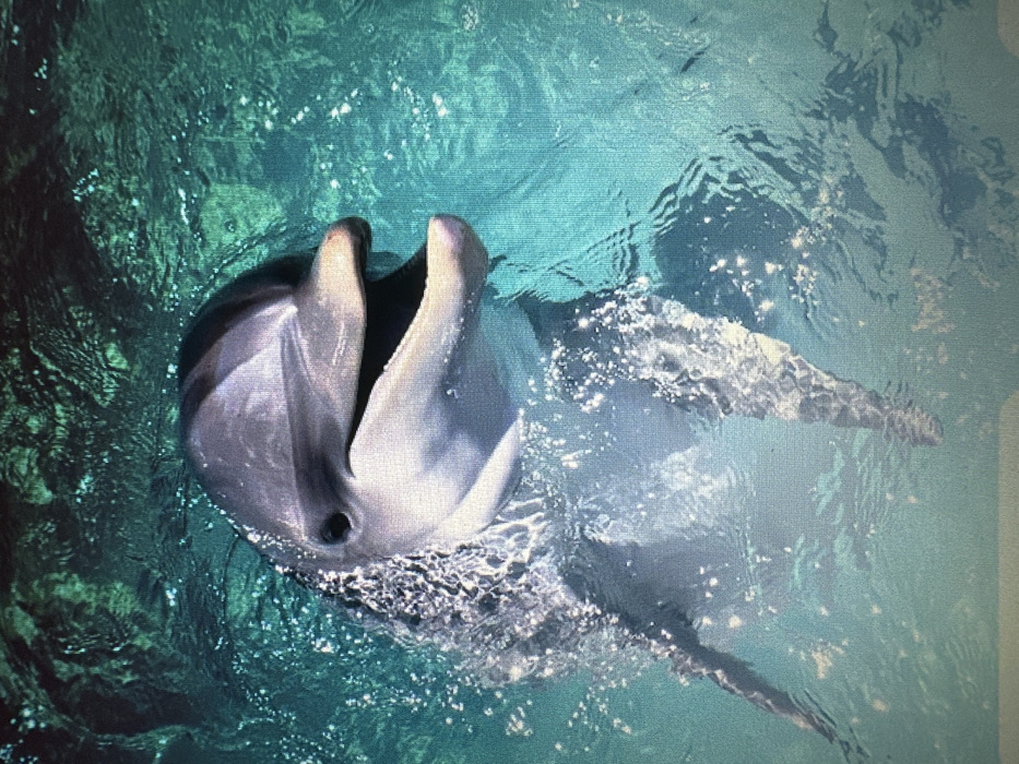 - "A single, mature bottlenose dolphin is depicted partially breaching the surface of highly clear, turquoise-colored water" by FM-hqQHl2, licensed under CC BY 4.0