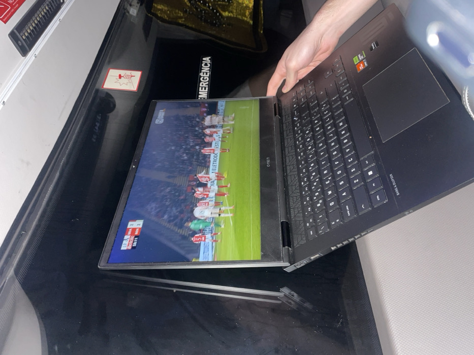- "An open black HP Omen laptop displays a football match, with players lined up on a green field" by FM-qaxKg1, licensed under CC BY 4.0