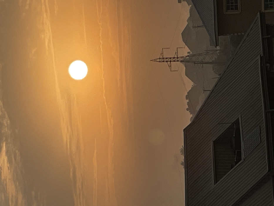 - "This image captures an urban or suburban landscape in Onitsha, Nigeria, at either sunrise or sunset, indicated by the dominant orange-yellow hue of the sky and a bright, circular white sun positioned in the upper right quadrant" by FM-sMDaR2, licensed under CC BY 4.0