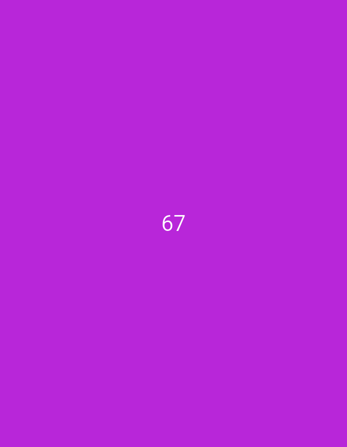 The image displays a uniform magenta-purple background. Centrally positioned on this background are the white digits "67." No other visual elements are present, precluding the identification of any people, subjects, objects, actions, interactions, or specific environmental details. The image does not contain any visual information to indicate a physical location, including Muka, Indonesia.