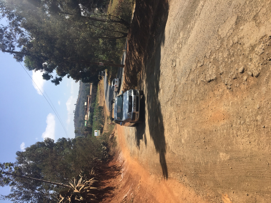 A silver Toyota Probox, bearing license plate KCM 285Y and a "PRIVATE" sign on its roof rack, is parked facing away from the viewer on an unpaved, reddish-brown dirt and gravel road in Limuru, Kenya