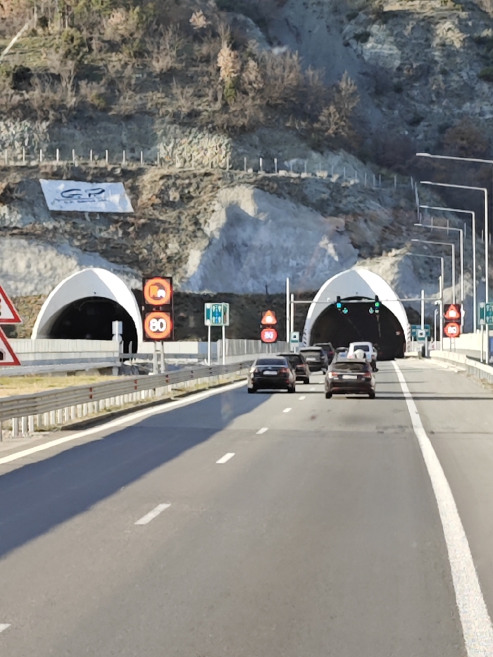 - "The image displays a two-lane highway approaching dual tunnel entrances carved into a rocky mountainside near Jeleznitsa, Bulgaria" by FM-PiSn82, licensed under CC BY 4.0