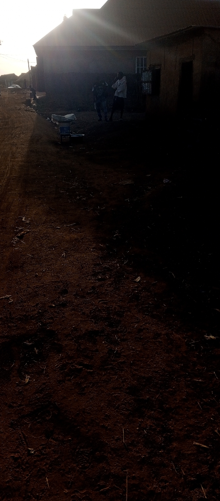 - "The image depicts an unpaved, reddish-brown dirt street or open area in Kakau, Nigeria, under intense, low-angle sunlight from the upper left, casting significant backlighting and deep shadows" by FM-9pOP92, licensed under CC BY 4.0