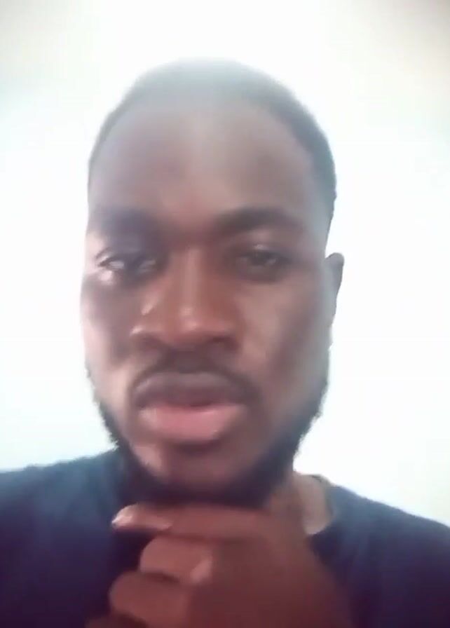close-up of a Black man with short dark hair and a trimmed beard. He is wearing a dark shirt and looking directly at the camera. His right hand is raised to his chin, and he appears to be speaking. The background is a plain, bright white.