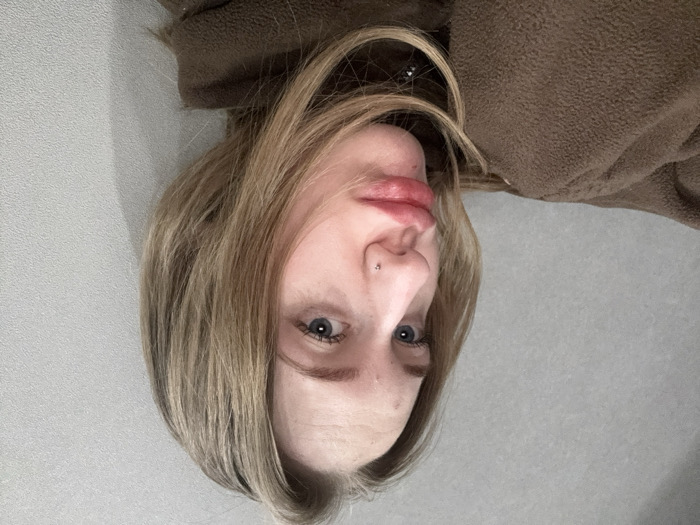 - "An extreme close-up depicts a Caucasian female with shoulder-length blonde hair and blue eyes" by FM-89o1I3, licensed under CC BY 4.0