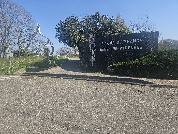 - "The image depicts an outdoor scene in Ger, France, on a clear day, featuring a monument dedicated to the Tour de France" by FM-bCw3N2, licensed under CC BY 4.0