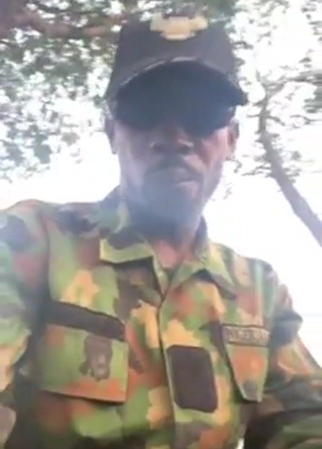 A man in a Nigerian Army camouflage uniform and a black baseball cap is seen from the chest up