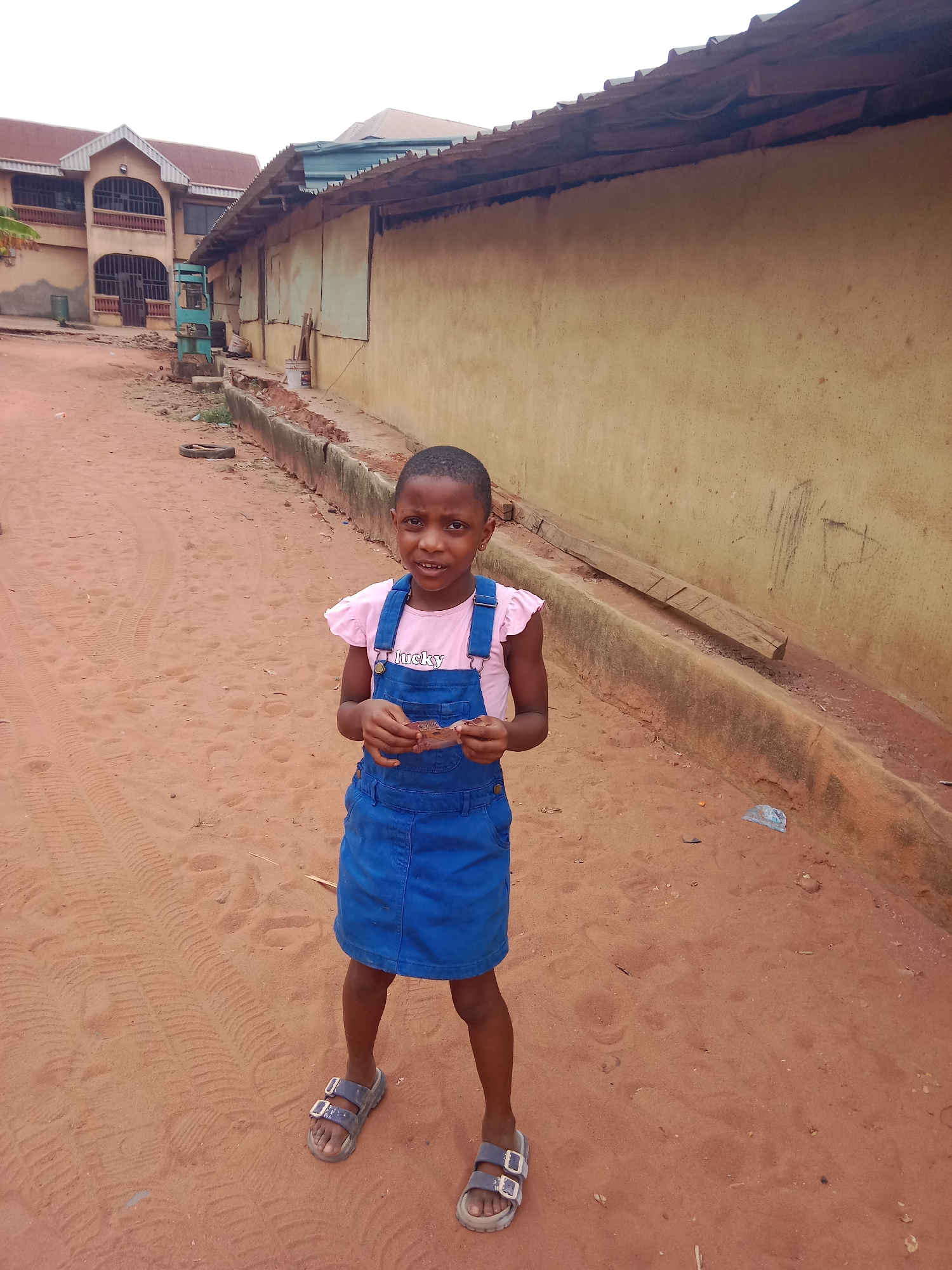 - "A young girl, estimated to be between 5-8 years old, stands centrally on an unpaved, reddish-brown dirt path in Onitsha, Nigeria" by FM-1xxCS2, licensed under CC BY 4.0