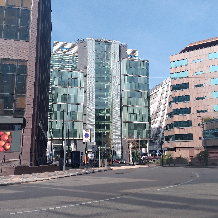 - "The image displays an urban street scene in the Snow Hill Queensway area of Birmingham, United Kingdom, under a clear blue sky with bright sunlight casting shadows across the foreground road" by FM-JtITl1, licensed under CC BY 4.0