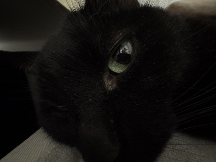 - "A close-up captures a black cat's face" by FM-fLERp2, licensed under CC BY 4.0