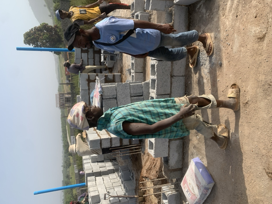 The image captures an active construction site in Karsana 2, Nigeria, under clear daylight conditions
