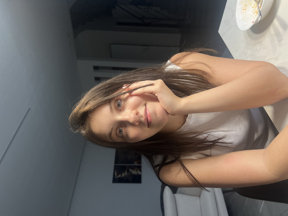 - "A young female, appearing in her late teens or early twenties, with long, straight, dark brown hair and blue eyes, is seated indoors, facing the camera with a slight smile" by FM-nv5Cg2, licensed under CC BY 4.0