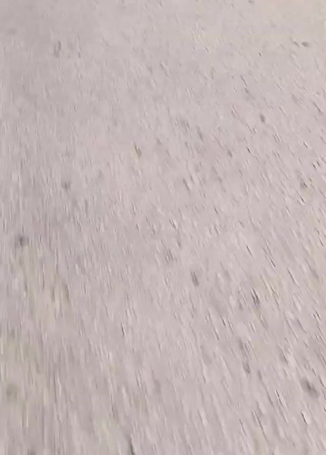 A video recorded from a moving vehicle shows a person riding a bicycle on a street in a suburban or rural area