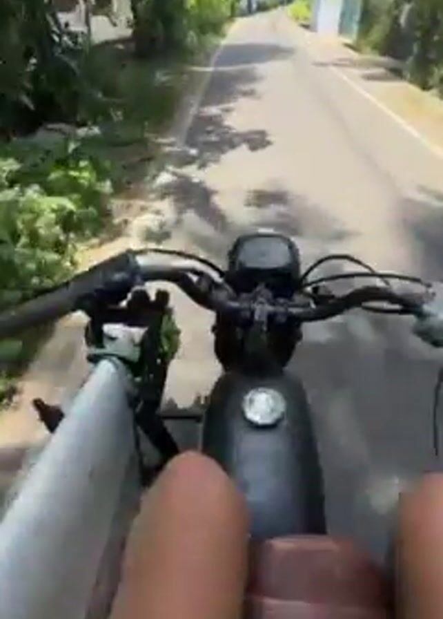 first-person perspective of someone riding a motorcycle on a paved road