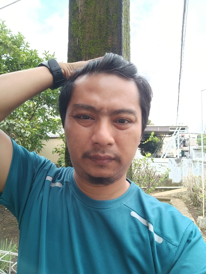 An adult male is depicted in an outdoor selfie taken in Limbangan Sari, Indonesia
