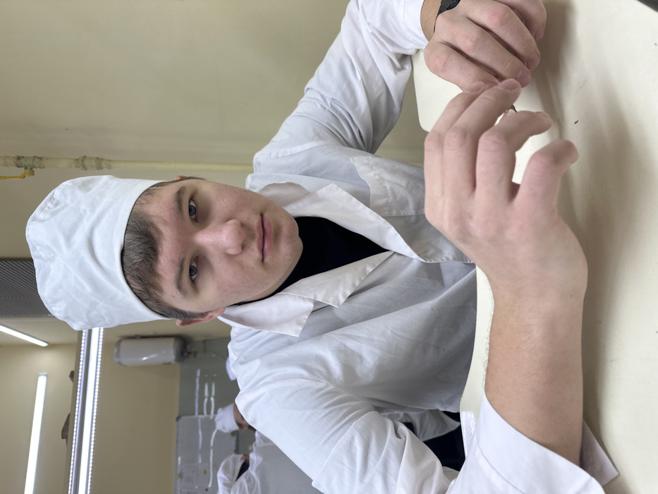 A young man in a white lab coat and cap poses in a brightly lit, sterile-looking room