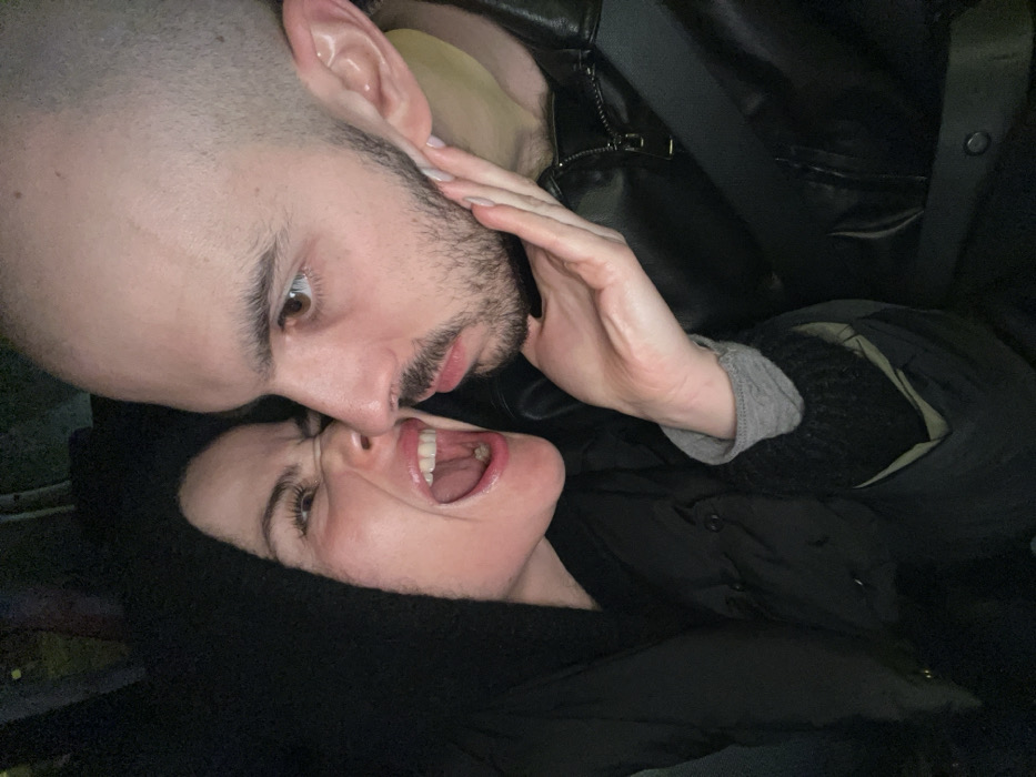 - "A close-up, tilted shot features a bald man with a beard, his face near that of a woman" by FM-2aYl13, licensed under CC BY 4.0
