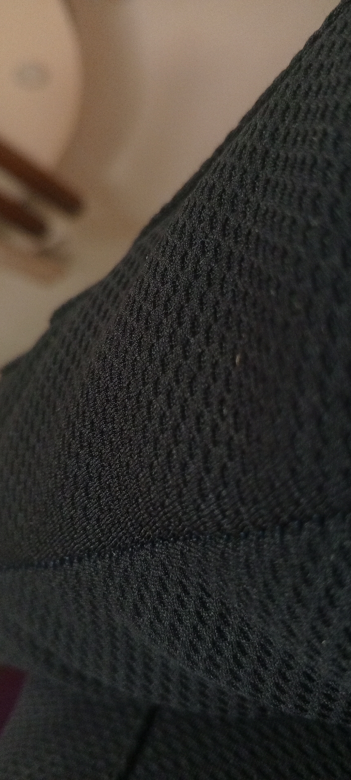 - "This image displays an extreme close-up of a dark grey or black textile fabric with a distinct, repeating patterned weave, possibly a mesh or waffle knit, showing numerous small, square or diamond-shaped indentations" by FM-68dgS2, licensed under CC BY 4.0