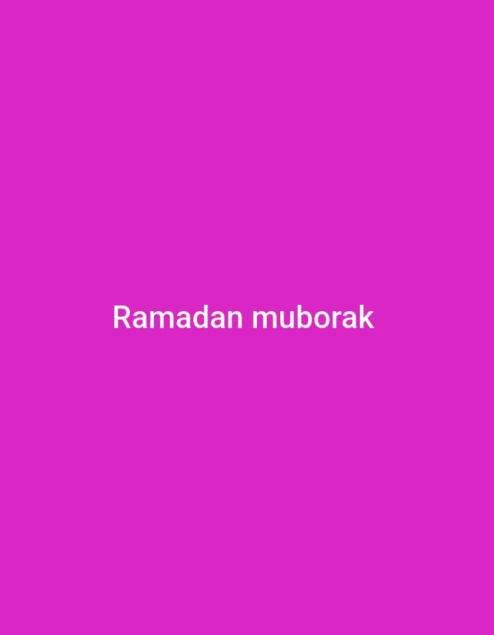The image displays a solid magenta (FF00FF) background. Centered horizontally and vertically on this background is white text that reads "Ramadan muborak". There are no other subjects, objects, people, actions, interactions, or environmental details depicted. The image provides no visual information regarding a specific location in the city of Yangi-Khayat, Uzbekistan, or any other geographical context.