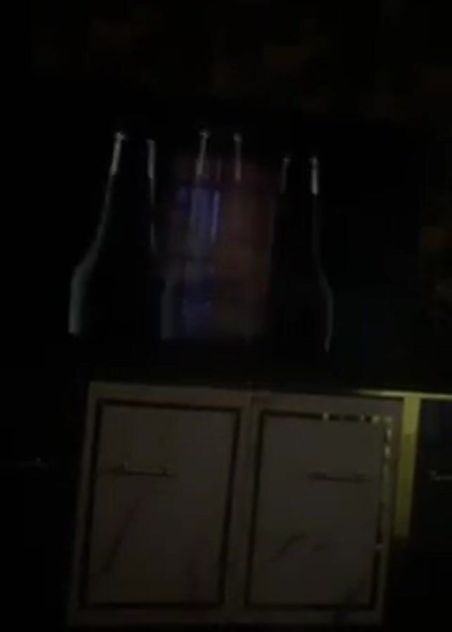 - "dark room with a backlit display of three bottles with red caps" by FM-elIfF2, licensed under CC BY 4.0