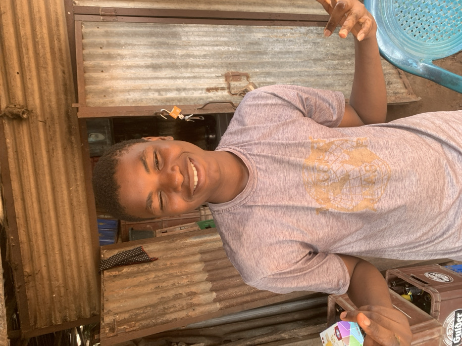 - "A young male individual stands smiling broadly with eyes closed, facing the camera in what appears to be an open market stall or shop in Onitsha, Nigeria" by FM-ItOEC3, licensed under CC BY 4.0
