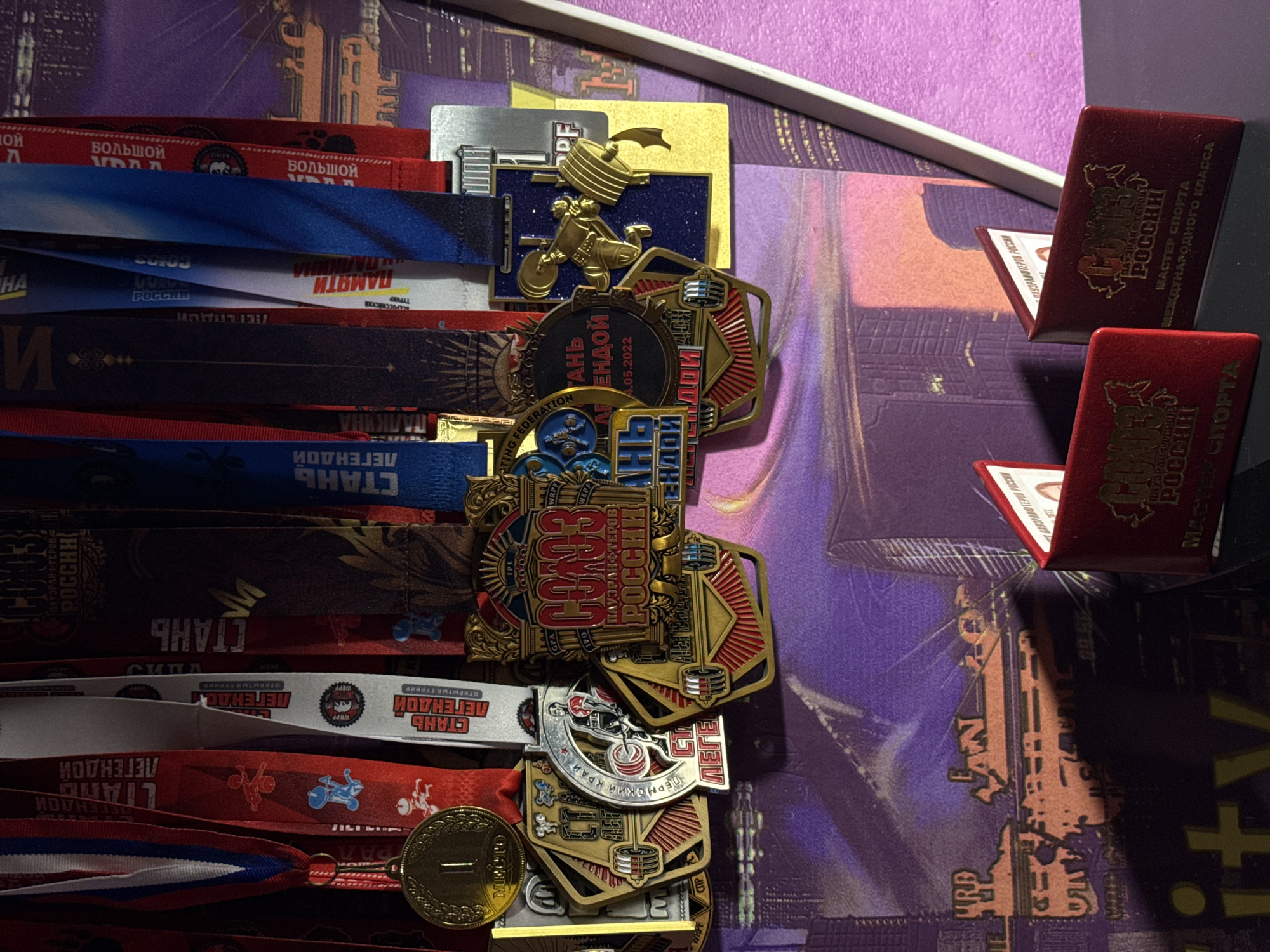 - "The image depicts a collection of medals and documents related to powerlifting events, likely from the city of Chaikovsky, Russia" by FM-1adK63, licensed under CC BY 4.0