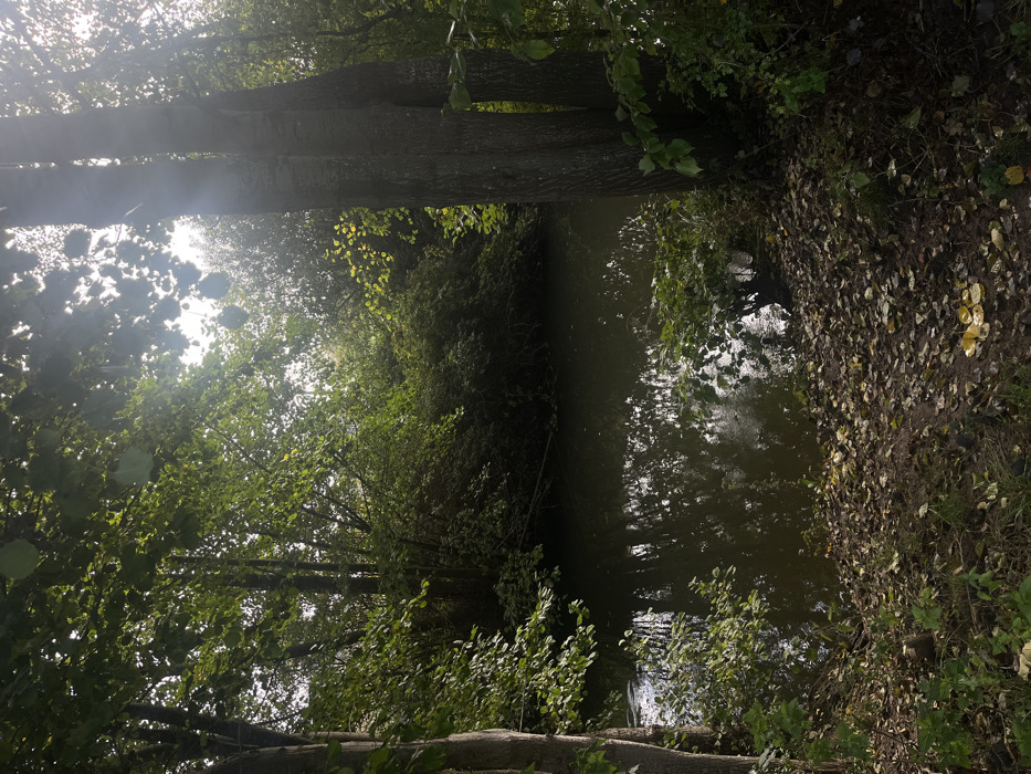- "The image depicts a tranquil natural scene at the edge of a water body, likely a stream or small river, located in Weyersheim, France" by FM-jAEXm1, licensed under CC BY 4.0