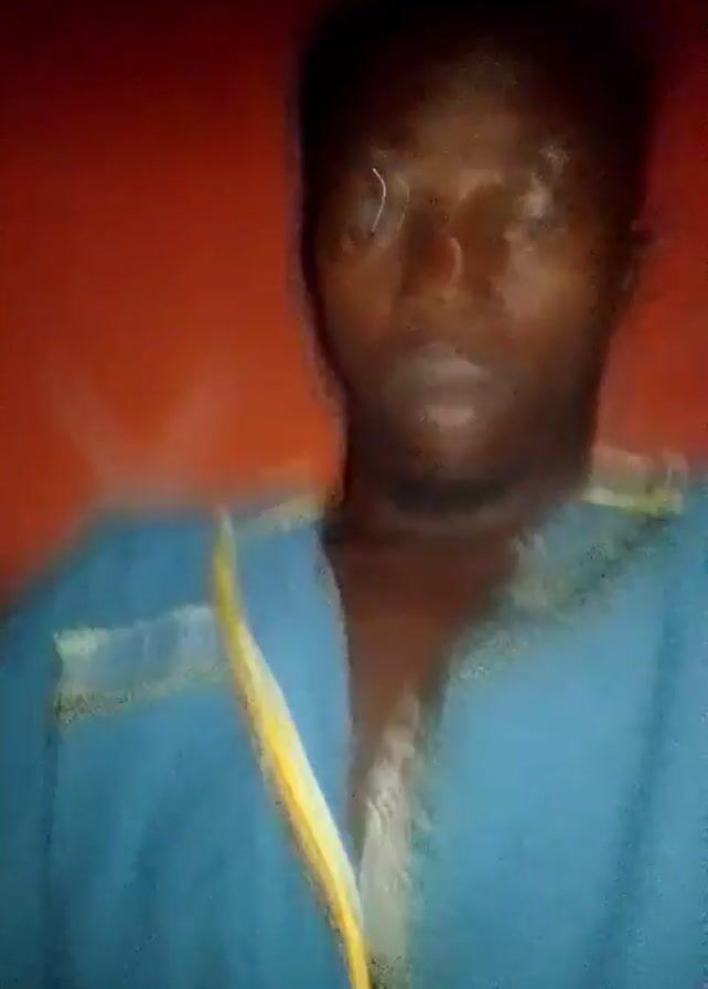 A man in a blue shirt stands in front of an orange wall. He moves his hand toward his face. The video appears to be filmed indoors, under poor lighting. The camera is held by the man, resulting in slight movements and changes in focus. The lower-left corner of the frame bears the inscription "TECNO SPARK 10c".