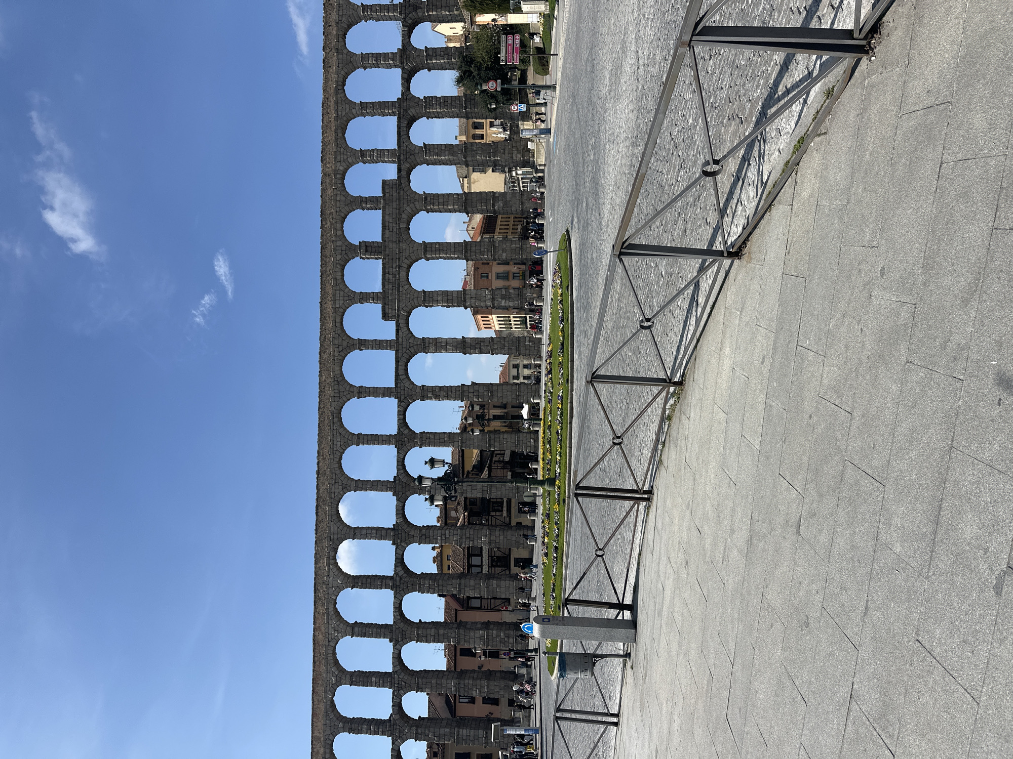 - "This image depicts a wide view of the Roman Aqueduct of Segovia, located at the Plaza del Azoguejo in Segovia, Spain, under a clear blue sky with scattered white clouds" by FM-NyfmR2, licensed under CC BY 4.0