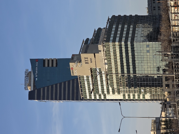 - "The image depicts an urban landscape in Tel Aviv, Israel, showcasing several multi-story commercial buildings under a clear blue sky" by FM-Y1dRJ3, licensed under CC BY 4.0