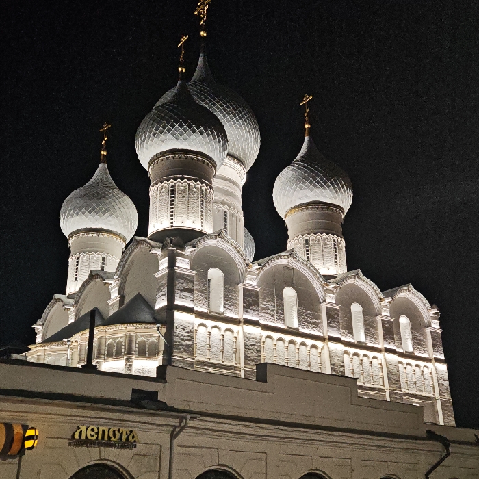 - "The image depicts a brightly illuminated Orthodox church at night in Kladovitsy, Russia, viewed from a slightly low angle" by FM-cLarj2, licensed under CC BY 4.0