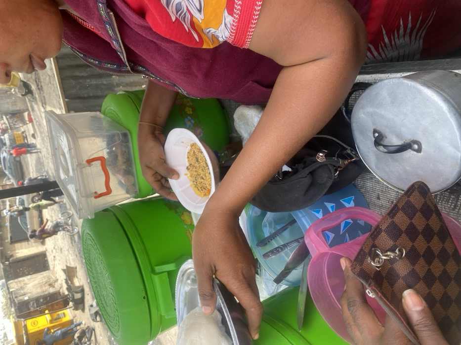 The image captures a street food vendor transaction in Fagge D2, Nigeria
