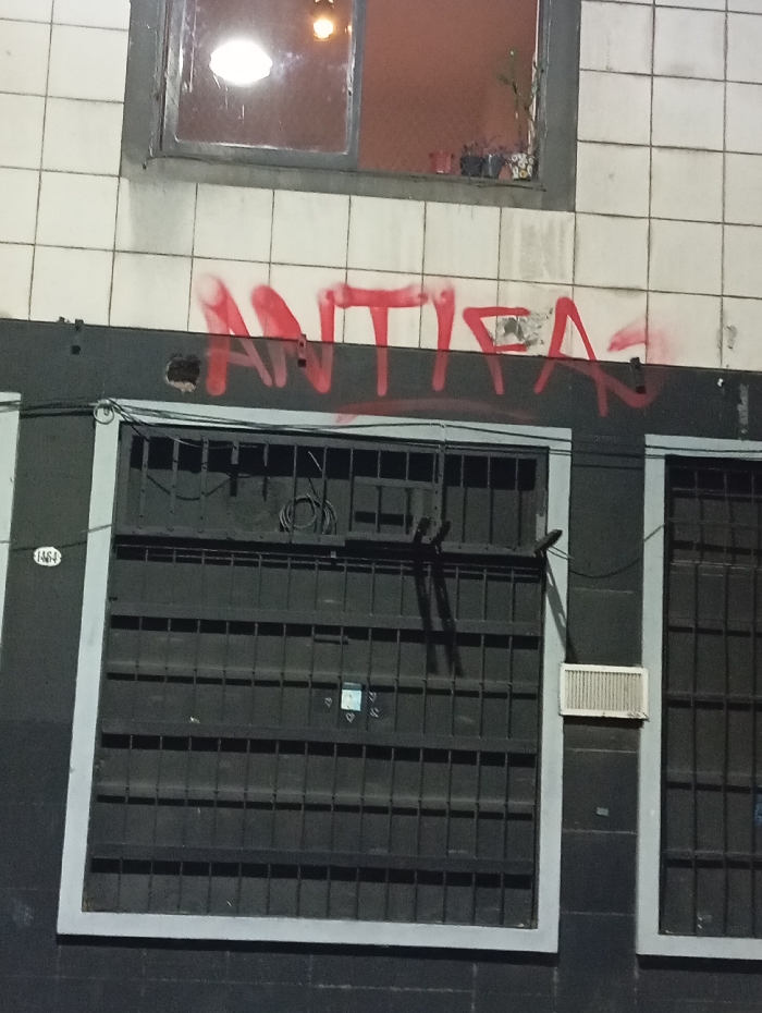 - "Graffiti reading "ANTIFAS" is sprayed in red paint above barred windows on a building's facade" by FM-Tz4zh1, licensed under CC BY 4.0