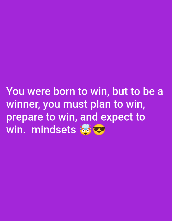 A motivational message against a solid purple background reads, "You were born to win, but to be a winner, you must plan to win, prepare to win, and expect to win