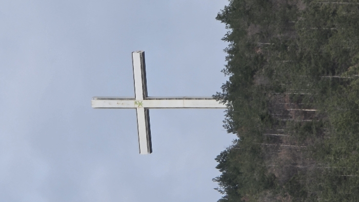 - "A large, white Christian cross is prominently centered against a pale, overcast sky" by FM-etvNA2, licensed under CC BY 4.0