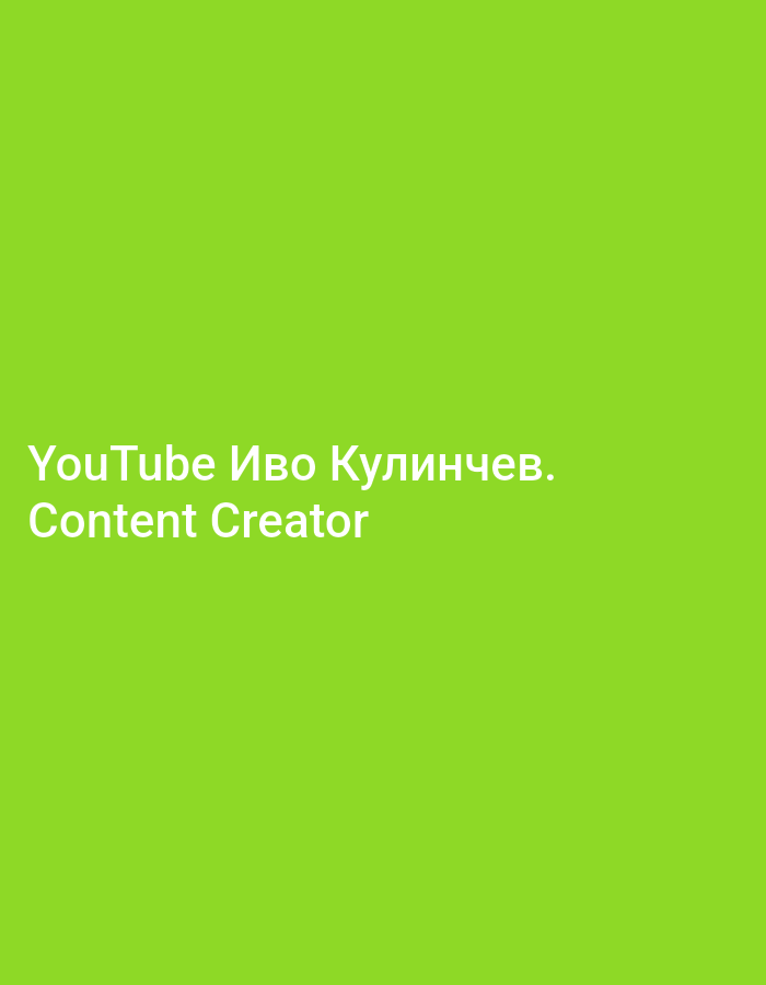 The image displays a solid lime green background. White, sans-serif text is centrally located in the lower portion of the image. The first line of text reads "YouTube Иво Кулинчев." The second line, directly beneath, reads "Content Creator". No individuals, physical objects beyond the text, or actions are depicted. The environment is a flat, uniformly colored graphic field. The image contains no visual information identifying a specific physical location in the city of Pernik, Bulgaria, or any other geographical area.
