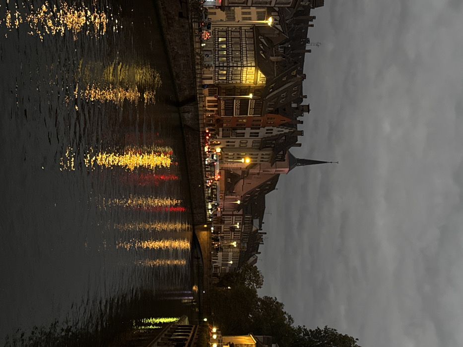 - "This image captures a nighttime or late twilight scene along the Ill River in Strasbourg, France, under a heavily overcast, dark grey sky" by FM-JDMdX2, licensed under CC BY 4.0