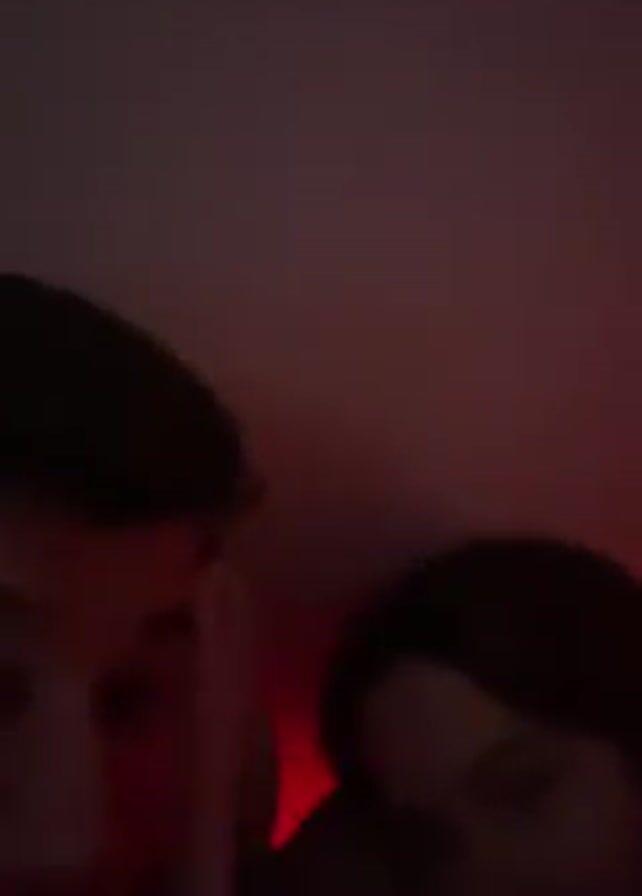 man and a woman, possibly in a bed or on a couch, with a red light illuminating the scene. The man is talking, and the woman appears to be sleeping or resting beside him. The focus shifts between the man and the woman during the video.