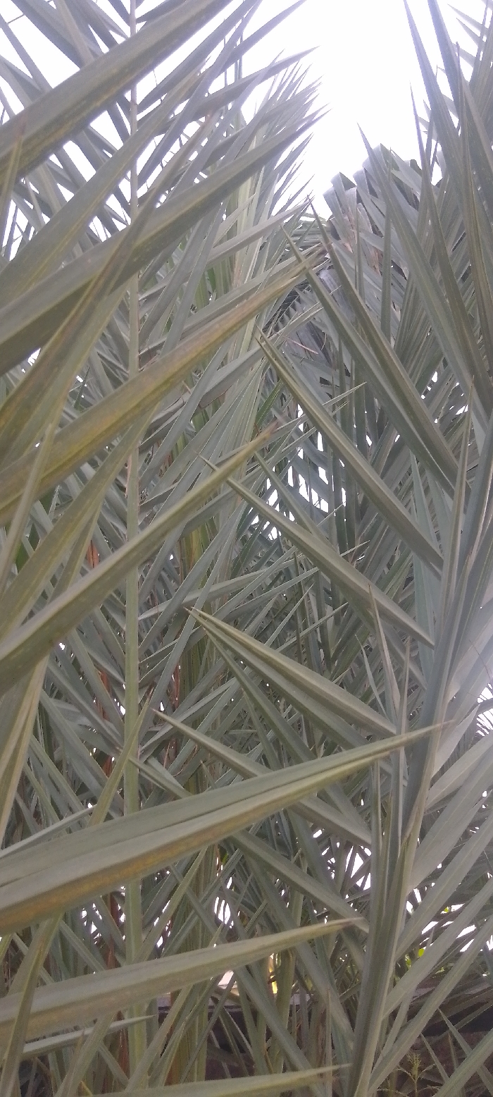 - "The image displays a dense canopy of slender, elongated palm fronds, viewed from a low angle looking upwards" by FM-MEl8q2, licensed under CC BY 4.0