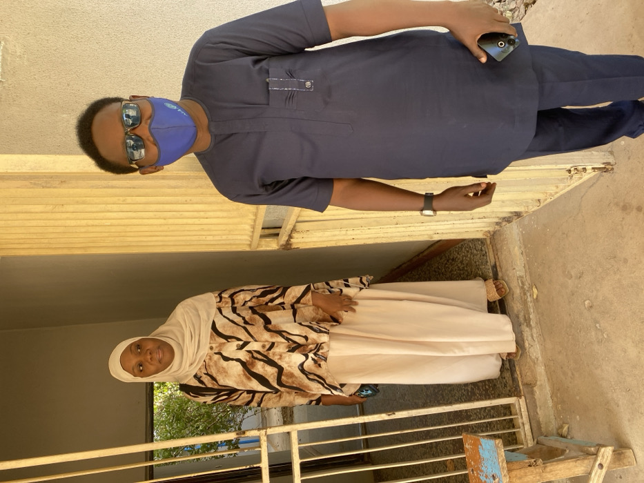 The image depicts two individuals, an adult male and an adult female, standing in what appears to be an entrance or transition area of a building in Shaba, Nigeria