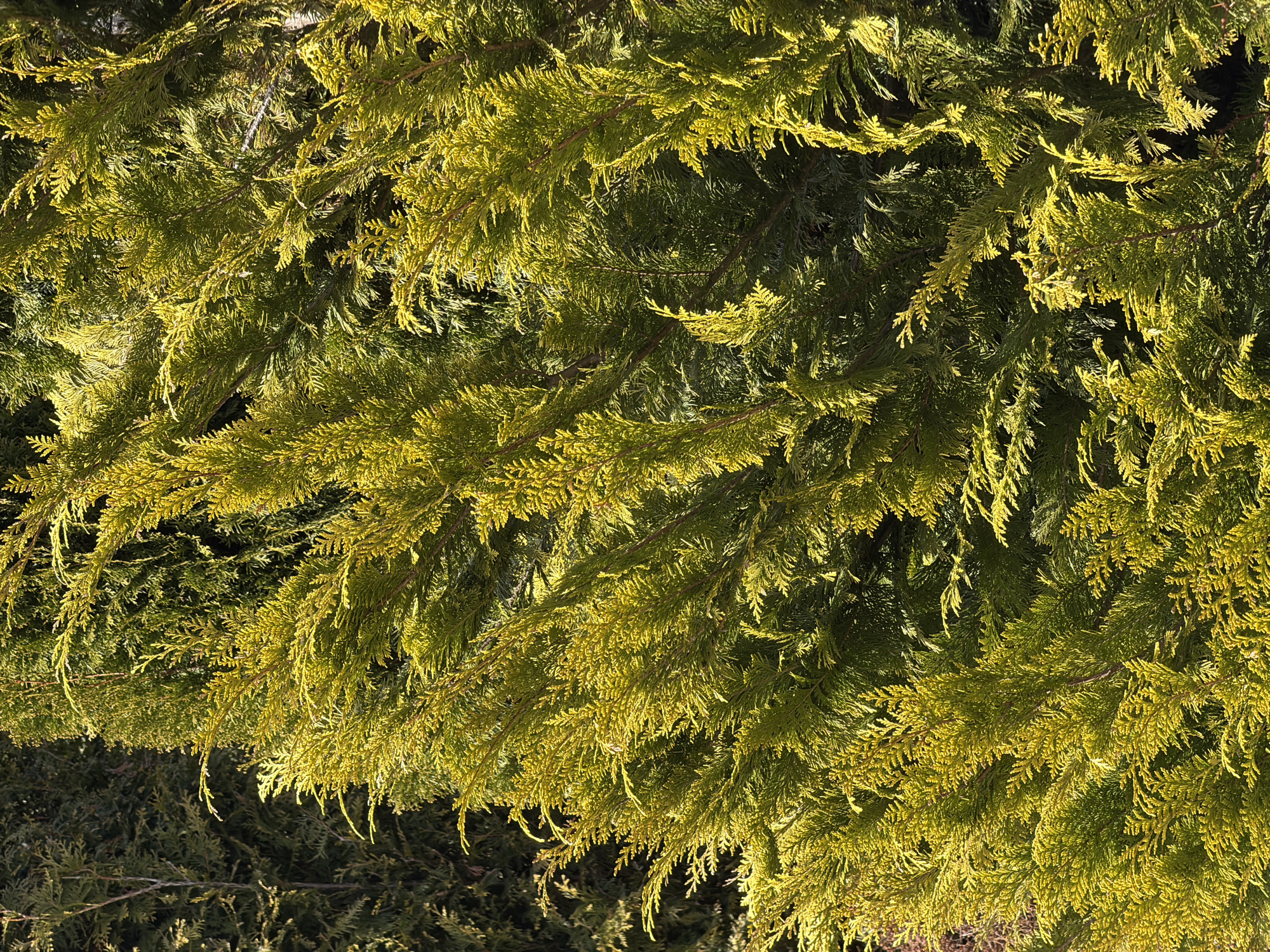 - "The image displays a close-up view of vibrant yellow-green evergreen foliage, consistent with a coniferous species such as Thuja or Chamaecyparis" by FM-VEVQs1, licensed under CC BY 4.0